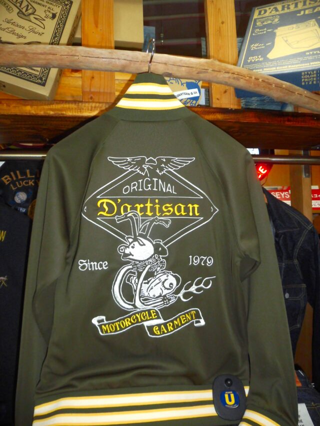 「ダルチザン」新作入荷 投稿日: 2026年1月20日2026年1月20日 投稿者: JEANS SHOP U Web Staff こんにちわ! いつもUホームページご利用有難うございます 2026年新作 「ダルチザン」 ●8202 トラックジャケット 価格:¥25080(税込) 生地はこれまで同様ジャージ生地を使用しているので 伸縮性に優れており3シーズン着用可能な優れもの 今回はモーターサイクル系のデザインで エンジンは豚さんロゴのモーターサイクルで ダルチザンらしいユーモアたっぷりのデザインに 仕上っております これから春先に向けて一着いかがでしょうか!
