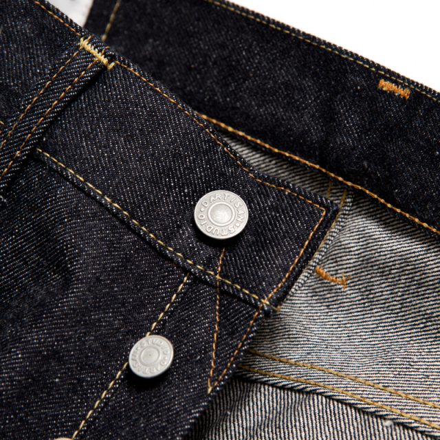 シャトル織機で織り上げた15ozの分厚いデニム生地は